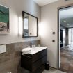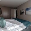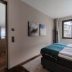 The apartment has two double bedrooms, both thoughtfully lit and equipped with the necessary storage space for clothes and accessories.