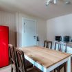 The apartment consists of a living room with a TV area, a sofa and a dining table for 4. The separate kitchen is complete with appliances and equipped with everything you need to prepare lunches and dinners just like at home.