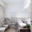 Welcome to the ARGEGNO flat, located on the second floor of a modern building near the centre of Como. This bright and well-furnished three-room apartment offers a comfortable and sophisticated stay in one of the most convenient areas for visiting the city and the surroundings of Lake Como, also by public transport. The living room is spacious and cosy, furnished with a sofa, a cabinet with TV and a refined round table for four, ideal for convivial dinners. The modern kitchen, in white tones with an elegant wooden countertop, is fully equipped with all appliances and the necessities to prepare and serve meals as at home. On one of the living room walls, a painting depicts the beautiful village of Argegno, overlooking Lake Como.