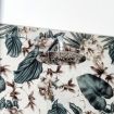 The modern and functional bathroom has a washer/dryer and a spacious shower with walls decorated with floral motifs. The wooden washbasin shelf adds a touch of class to the room.