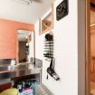 Going down to the street level there is a bathroom with shower and a laundry room with washing machine and drying racks.