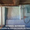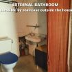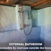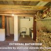 On the ground floor, to the external staircase, is the bathroom with shower, inside the woodshed room.