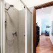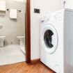 The sleeping area includes a spacious double bedroom, furnished with a wardrobe and chest of drawers for organizing clothing and accessories. The corridor leading to the bedroom has a practical built-in wardrobe and a washing machine, making the apartment suitable for stays of any length. The bathroom is complete with a bidet and shower.