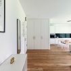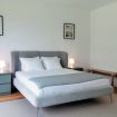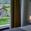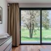 The apartment features a stylishly decorated double bedroom, enhanced by a beautiful French door that opens onto the surrounding nature, offering a complete immersion in the landscape.