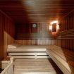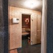 There are 3 bathrooms, one small service bathroom, one complete bathroom with shower, and one with shower only, connected to the sauna, available to guests.