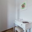 There are two bedrooms, both doubles and with wardrobes for storage, one with a lake view, the other with a view of the greenery outside and with a desk for studying and working.
