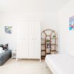 Going up the staircase you will reach the 2 bedrooms: a large and sunny double bedroom, furnished with a spacious closet and a relaxing armchair, and a more modest and bright one with its own closet, a single bed and a single sofa bed (Please note: The sofa bed will not be prepared as a bed for your arrival, as we deem it proper to use it as a sofa during the day. You will find the bed linen, pillows and blankets in the wardrobe/shelf closest to the sofa.). Both rooms are equipped with a desk and internet connection via ethernet cable. The comfort is maximum: the double and single beds have adjustable slatted bases for your comfort! The floor concludes with a nice bathroom with bathtub.