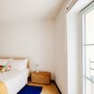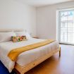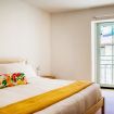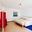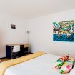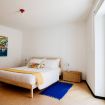 In the spacious double bedroom, the minimal furniture gives space to the artistic vein and the perfect atmosphere for working too: the desk is the perfect workstation for your smart working!