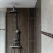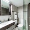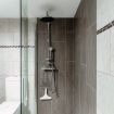 Casa Edera has a newly renovated bathroom in modern style with toilet, washbasin and a large shower with overhead shower head.