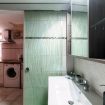The kitchen, which is separate from the living room, is well equipped with an oven, induction hob, large cooker hood and a spacious sink. In the kitchen you can comfortably have dinner or lunch thanks to the solid wood table, but also possibly do laundry because it is served by a modern washing machine.