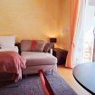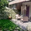 A charming private garden is furnished with an outdoor lounge set, perfect for relaxing in the open air.