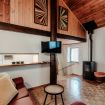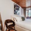 CASA GIANNA is a romantic duplex where wood is the protagonist, in the furniture, parquet flooring and ceilings, creating the atmosphere of a mountain cottage: there is even a nice stove to warm up your winter evenings! The living room consists of the relaxation area, with TV and a comfortable sofa. Next to it, there is the separate kitchen, complete with everything you need and the dining table. From here you have access to the wooden balcony, where you can relax and enjoy the mild climate of Ticino in every season, sitting at the table for 4 people. Going up the stairs, you enter the sleeping area, with the lovely master bedroom and the log cabin-style closet, where you can store all your wardrobe. The apartment is completed by the original bathroom with shower.
