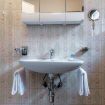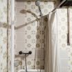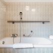There are two bathrooms, one with shower and one with bathtub, shared on the two floors.