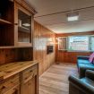 Located inside a typical Leventina Valley house in the picturesque village of Osco, the apartment welcomes you into its living room, furnished with a comfortable sofa and armchair from which to watch a movie with friends or relax while looking at the landscape from the window overlooking the village rooftops. The sofa becomes a double bed for the night. Wood is the protagonist here, as in the spacious and bright master bedroom, with a double window from which to admire the view of the surrounding mountains and a closet in which to store your wardrobe.