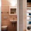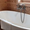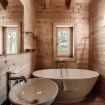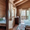 Going up the staircase, you enter the sleeping area. There are 3 bedrooms, two double bedrooms with a small balcony overlooking the nature, and a triple room with a bunk bed and a single bed. Furthermore, on this floor there are two complete bathrooms, one with a shower and one with a beautiful bathtub.