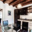 Welcome to the Cielo Apartment, a charming three-room apartment located in the heart of Como, perfect for those looking for an elegant and comfortable environment. Upon entering, you will find yourself in a spacious living room with tiled floors and a comfortable leather sofa, ideal for relaxing after a day of exploring. The stone TV wall and the wood in the exposed beams lend a rustic touch to the room.