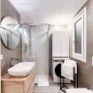 The large and elegantly furnished double bedroom offers a peaceful and well-organized space, complete with a practical clothes rack to conveniently store garments and luggage. The bathroom is fully equipped with all modern comforts, including a shower, washing machine, and dryer, ensuring maximum convenience.