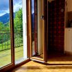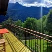 This cozy mountain retreat blends the charm of tradition with modern comfort. Original features such as the large stone fireplace, wood-burning stove, and ceramic floors tell stories of the past and create a warm and homely atmosphere. The bright living room, with its comfortable sofa bed and large wooden table, is perfect for relaxing and sharing special moments together (Please note: the sofa bed is not prepared, we think it is proper to use the sofa during non-sleeping hours. You will find sheets, pillows and blankets in the closet/shelf most adjacent to the sofa). The French door opens onto a spacious covered balcony overlooking the garden and forest, offering enchanting views throughout the day. The fully equipped kitchen provides everything you need to cook just like at home. From here too, you can access the outdoor space—perfect for enjoying the sun and fresh mountain air. The sleeping area features a spacious double bedroom with wooden furnishings and windows that frame the alpine landscape. The bathroom, compact but functional, includes a practical bathtub with shower.