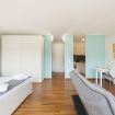 The living room is an open space with a single sofa bed that separates the TV area from the double bed; a large closet will contain your whole wardrobe. The small table is perfect for 2, but also suitable for 3; the kitchen is separate and equipped with all the appliances. The bathroom has a modern shower.