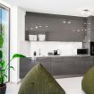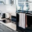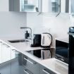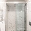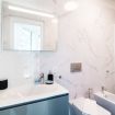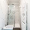 The apartment welcomes you with a large open space living room, composed as follows: the large grey lacquered kitchen, complete and equipped to prepare lunches and dinners like at home; the TV area, with an original corner sofa to relax at the end of the day; the dining area, with a table for 4 people to enjoy meals or an aperitif; the large corner window overlooking the city from the third floor, a true architectural masterpiece of the building. There are two bedrooms, both doubles and furnished with care. Finally, there are two modern, comfortable bathrooms with showers.
