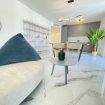 This brand new apartment, furnished with designer furniture, will surprise you with its original details and abundant light coming in through the large windows.Admire the skyline from the comfortable sofa, where you can also relax with a good movie on the large flat-screen TV.