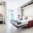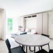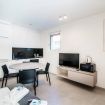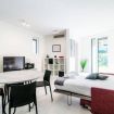 The living room with open kitchen has a round table with 4 chairs and a TV corner with a comfortable sofa. To make the most of all the spaces, a foldaway double bed allows you to separate the living area and sleep in complete comfort. A modern bathroom with shower completes the flat. The latest technologies, furnishings from the best brands and the Home Décor with attention to the smallest details make FLAT IRON 3 a reality of the highest living standards.
