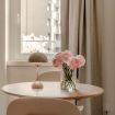 The living area includes a fully equipped kitchen and a refined dining nook, ideal for leisurely breakfasts or intimate dinners, illuminated by a stunning lamp.