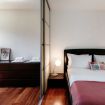 In the splendid setting of Collina d’Oro, just a few minutes from Lugano, GARDEN FLAT is the ideal choice for those who wish to spend a vacation immersed in the beauty of Ticino. On the ground floor, a bright open space hosts a modern open-plan kitchen, enriched by a large peninsula with a dining table, and a relaxation area with a comfortable double sofa bed, perfect for accommodating two additional guests (Please note: the sofa bed is not prepared, we think it is proper to use the sofa during non-sleeping hours. You will find sheets, pillows and blankets in the closet/shelf most adjacent to the sofa). A French door leads directly to the garden, a green oasis framed by shrubs and palm trees, where you can enjoy the tranquility of the place and the surrounding nature. The parquet flooring, which characterizes every room of the house, contrasts with the white walls and blends perfectly with the external landscape. A wooden staircase leads to the upper floor, where the double bedroom offers an intimate and comfortable environment, with a large sliding-door wardrobe providing ample space and convenience. The contemporary-designed bathroom is equipped with a shower, perfect for a moment of relaxation after a day exploring the area.