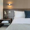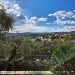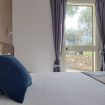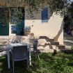 The apartment, designed as a well-organized open space, perfectly combines the living area with the sleeping area. Upon entering, the space opens up to a fully equipped kitchenette, ideal for preparing delicious meals, next to a dining table that comfortably seats four. Adjacent to it, a comfortable double sofa bed welcomes any additional guests, providing a practical and cozy solution (Please note: the sofa bed is not prepared, we think it is proper to use the sofa during non-sleeping hours. You will find sheets, pillows and blankets in the closet/shelf most adjacent to the sofa). Continuing on, you reach the sleeping area, where the double bed is placed in a small corner, partially separated from the rest of the space. The wooden headboard along the wall, paired with the bedside lamps, creates an intimate and refined atmosphere, perfect for relaxing after a long day at the beach. Two large French doors illuminate the entire apartment and lead directly to the private garden, a green oasis where you can enjoy the sea breeze and a stunning view of the olive trees and the gulf.