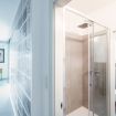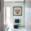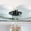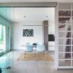 Next door, separated by a glass window, the dining area with a beautiful glass table and designer chairs: enjoy here a dinner prepared with local products in the modern kitchen, complete and equipped with appliances and everything you need to prepare and serve meals.