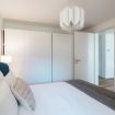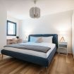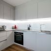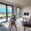 This two-room apartment, modernly and tastefully furnished, welcomes you with a large and bright living room, where the large windows show the surrounding greenery. The TV area has a large sofa and two armchairs to relax at the end of the day, chat, watch a movie with friends.