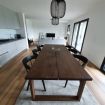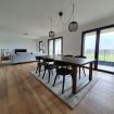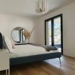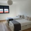 This three-room apartment, located inside a newly built building, is furnished with care and taste for design, in which wood is the protagonist with its honey tones. The large open space living room is composed as follows: a dining area, with a large table for 8 people and a modern kitchen complete and equipped with appliances and everything needed to cook and serve meals; the living area, consisting of sofa and armchair, for chatting and watching a movie or with friends on the large flat screen TV.