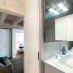 Entering, there is the living room, with a comfortable sofa on which to relax after a day spent on the lake, which becomes a double bed for the night (Please note: The sofa bed will not be prepared as a bed for your arrival, as we deem it proper to use it as a sofa during the day. You will find the bed linen, pillows and blankets in the wardrobe/shelf closest to the sofa.). Next to it is the dining table for 4, where you can eat with family and friends. The kitchen is open to the living room, modern and complete with everything you need for lunches and dinners like at home. It is from the balcony that you can enjoy the best view of Lake Lugano and its green mountains: admire the view while sipping an aperitif on the small table outside!