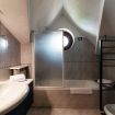The bright open space living room consists of the TV area, with a comfortable sofa for watching a movie and chatting with friends, a dining table for 4 and the open kitchen, complete with everything you need to prepare lunches and dinners like at home and with a peninsula counter with stools, ideal for breakfasts and aperitifs. There is also a service bathroom with toilet on this floor. Climbing the original staircase leads to the sleeping area, consisting of two bedrooms, a double bedroom and a twin bedroom with 2 single beds. Concluding the apartment is a large bathroom with a bathtub/shower.