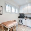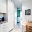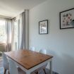 The eat-in kitchen is fully equipped with everything you need to prepare lunches and dinners like at home and furnished with a table for two for snacks and breakfasts.