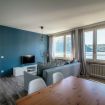 As you enter, you will be greeted by a spacious living room, composed of the TV area, with a comfortable sofa where you can relax watching a movie or readiny a book at the end of the day; and the dining area, with a table for 4 to host lunches and dinners. From here you have access to the panoramic terrace, where your evening aperitifs will find the right atmosphere! The sofa becomes a French double bed for the night (Please note: The sofa bed will not be prepared as a bed for your arrival, as we deem it proper to use it as a sofa during the day. You will find the bed linen, pillows and blankets in the wardrobe/shelf closest to the sofa.).