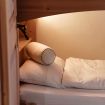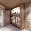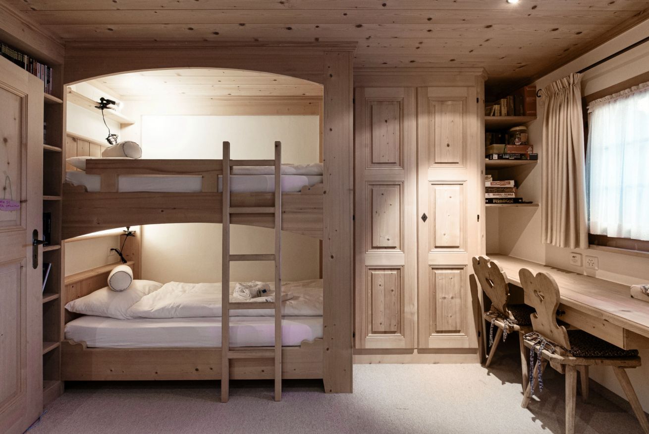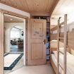 The sleeping area includes a spacious master bedroom furnished with custom-made wardrobes and furniture that optimize space. The other two bedrooms, designed for families or groups of friends, are equipped with sturdy wooden bunk beds.