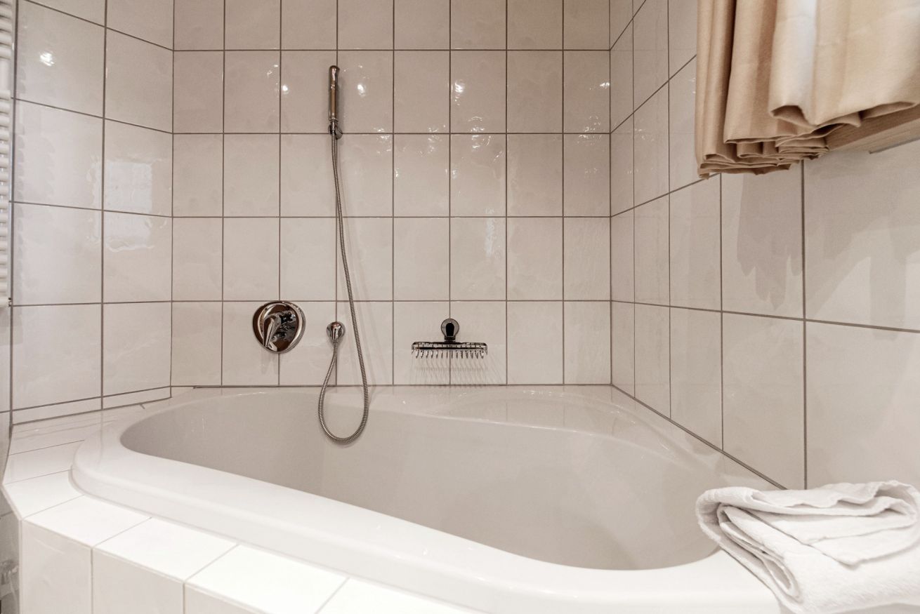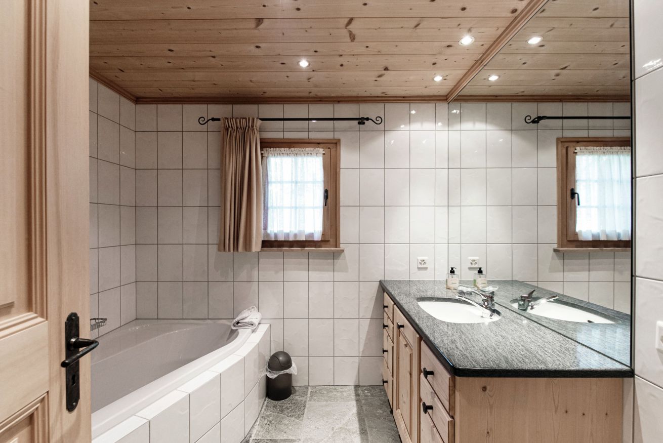 The apartment has two spacious bathrooms, one with a bathtub and the other with a shower, both carefully finished.
