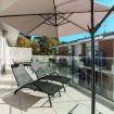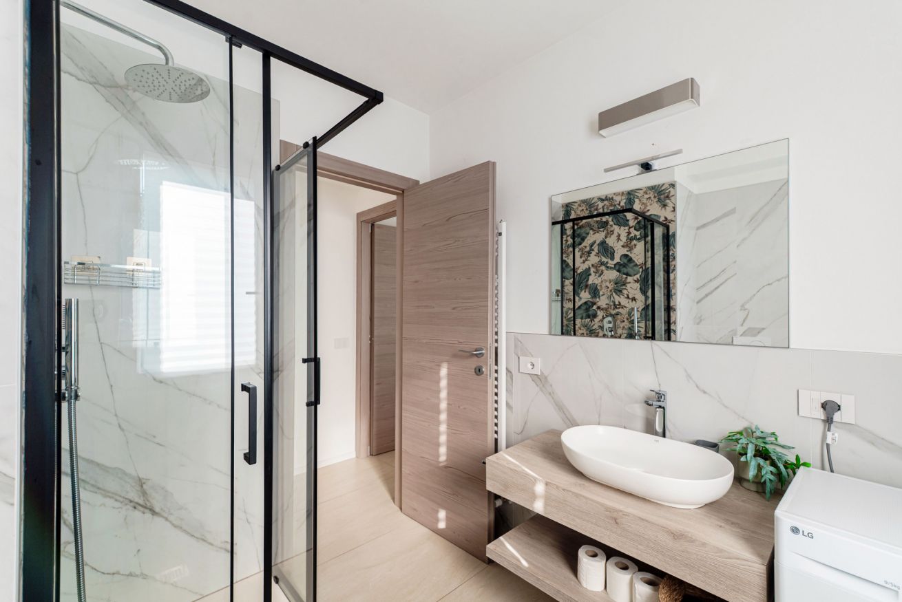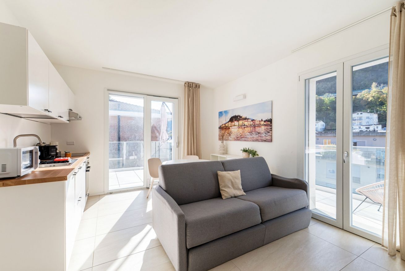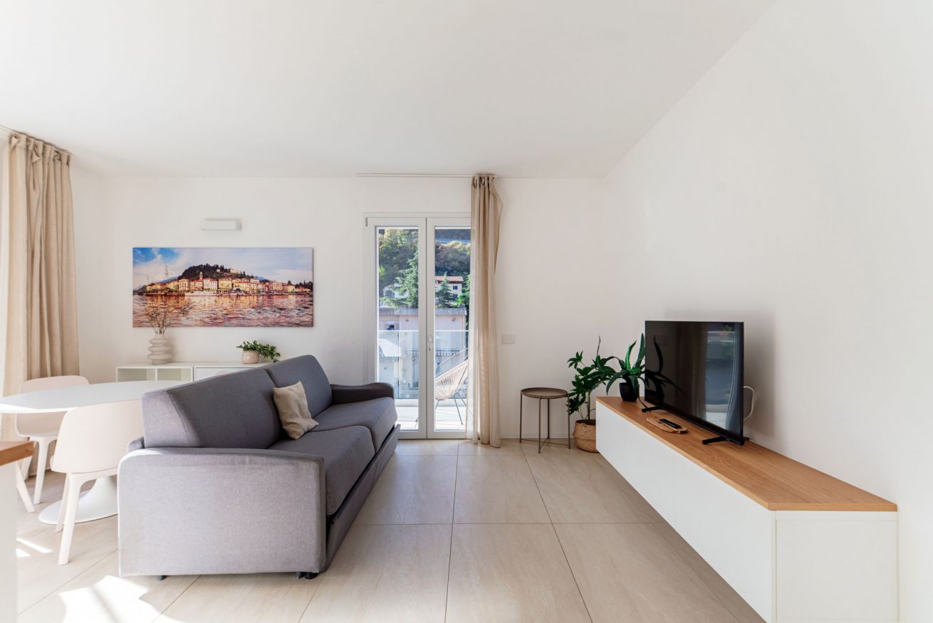 Located on the third floor of a new building with a contemporary design, BELLAGIO is a one-bedroom flat that offers a pleasant living experience, just a short distance from the centre of Como and the Swiss border. The bright living room has a comfortable double sofa bed, ideal for relaxing or hosting visiting friends or family (please note that the sofa bed is not prepared for your arrival, as we think it is only fair that you use it outside of sleeping hours). Sheets, pillows and blankets can be found in the cupboard/shelf closest to the sofa). The kitchen is ready to cater for all your culinary needs, with all the necessary appliances (dishwasher, coffee maker, kettle, oven, microwave, toaster, fridge and freezer) to prepare lunches and dinners, and the round table for 4 people to enjoy them together. The double bedroom guarantees a peaceful rest, thanks to its essential furnishings and delicate colours. The modern, well-equipped bathroom has a spacious shower with floral motifs and white marble. The furnished terrace, accessible from the living room, offers an outdoor space ideal for enjoying the summer weather, with a table, chairs, deckchair and sunshade at your disposal. Quality bed linen, towels and a courtesy kit are provided. We also leave a gift basket with the necessities for your breakfast. Free Wi-Fi is available.