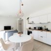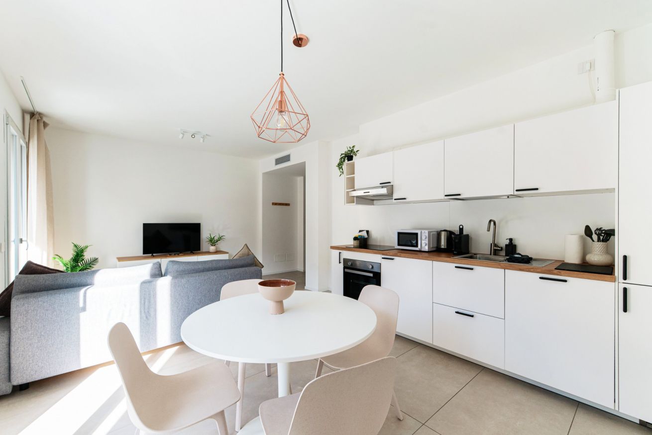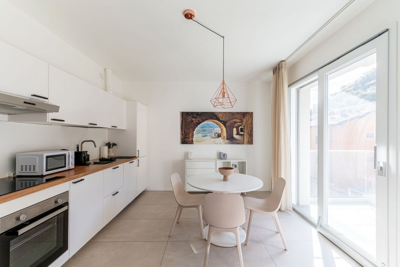 Choose BRIENNO Lario Suite for your vacation in Como, just minutes from the city center! Located on the second floor of a brand-new building, this one-bedroom apartment welcomes you into an elegant open-plan living room, decorated in white and pastel tones for a serene and relaxing atmosphere. The comfortable sofa is perfect for relaxing at the end of the day while watching a movie or reading a book, and doubles as a sofa bed for the night (Please note: the sofa bed is not prepared for your arrival, as we think it's only fair that you can use the sofa during non-sleeping hours. You will find sheets, pillows and blankets in the closet/shelf most adjacent to the sofa). The kitchen open to the living room is modern and functional, and has everything you need to prepare meals as you would at home. The master bedroom offers a comfortable retreat after a day spent exploring the city and surrounding Lake Como area. The bathroom with modern shower features an original design, with a wall decorated with floral motifs. Completing the apartment is the spacious balcony with glass parapet, an ideal corner to enjoy a cup of coffee in the morning or sip an aperitif at sunset.