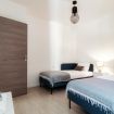 Continuing along the corridor, you reach the main bedroom, furnished with a double bed and a chest of drawers, lit with soft lighting to create the right atmosphere for a regenerating. rest. The second room has two single beds and a clothes rack for storing your clothes.