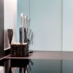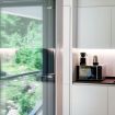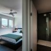 This modern one-bedroom apartment, furnished with taste and creativity, welcomes you with a colourful open-space living room. In the relaxation corner, there is a large flat-screen TV to watch a movie with friends after a day of sightseeing and a comfortable sofa that converts into a double bed for the night (Please note: The sofa bed will not be prepared as a bed for your arrival, as we deem it proper to use it as a sofa during the day. You will find the bed linen, pillows and blankets in the wardrobe/shelf closest to the sofa.). Next to it, there is the dining table for 4 people, in front of the fully equipped kitchen with everything you need to prepare lunches and dinners just like at home. In this room the shades of green and blue blend perfectly with the external landscape, visible through the large window: from here you can access the balcony overlooking the greenery of Gudo and enjoy a good glass of local wine at aperitif time!