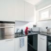The kitchen is separate, fully equipped and complete with everything you need to prepare meals, including a coffee machine and a microwave.