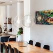 Upon entrance, you are welcomed by a functional space for storing shoes, jackets, and backpacks, which leads to the large open-plan living room. The U-shaped kitchen is modern and fully equipped with everything you need, inviting you to prepare lunches and dinners with friends while enjoying an aperitif on the counter. The large and cozy dining table for six is the heart of evenings spent recounting the highlights of the day and sharing the flavors discovered in the local markets. Opposite the table, you will find your focus in the smart working area with a desk and chair, perfect for work and study. The comfortable sofa awaits you for moments of relaxation, watching a movie, reading a book, or listening to good music.