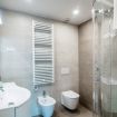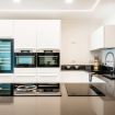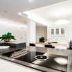 This spacious luxury five-room apartment has tastefully and stylishly chosen furnishings and finishes. As you enter, you will be welcomed into the open plan living room, with a 6 seater corner sofa for watching a film with friends on the large flat screen TV, ideal for 'movie nights'. The sofa also opens out into a double sofa bed for sleeping.