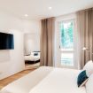Welcome to the two-room flat LUXURY LUNGO LARIO, an elegant flat located in a building in the historic centre overlooking Como's picturesque lakefront. This modern and bright flat is characterised by large windows that flood the spaces with natural light, highlighting the elegant finishes, such as the fine parquet flooring. As soon as you enter, you are greeted by a spacious living room, with a comfortable sofa that becomes a double bed, perfect for hosting friends or family. Opposite is a refined white marble table with seating for four, adjacent to a state-of-the-art kitchen, fully equipped with all necessary appliances. The master bedroom is an oasis of comfort and style, with a bed with a leather headboard, a wall-mounted television and a large mirror. The open master bathroom, separated from the room by a glass wall, is original, made of marble embellished with silver-coloured details. For added convenience, the bedroom has a spacious walk-in wardrobe with hangers, drawers and shelves to store all guests' wardrobes, even for longer stays. The light-coloured parquet flooring in the room adds an extra touch of elegance. The flat also has a second bathroom, also in white and grey marble, complete with shower. The entire flat is cleverly illuminated with lights that create the right atmosphere for your relaxing holiday. The outdoor balcony offers a delightful spot to relax, with a small table for two overlooking the greenery behind the house, an ideal place to enjoy quiet moments in the open air. Finally, the flat is equipped with a practical washer-dryer and air conditioning throughout, ensuring a comfortable stay.
