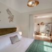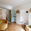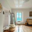 Up the winding staircase you reach the sleeping area. There are two bedrooms, making the flat perfect for couples of friends, families and small groups: the double bedroom and the large suite, which is very bright and overlooks two sides, with a relaxation area and wardrobe furnished with armchairs.