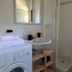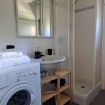 The bathroom, complete with toilet, bidet, shower and washing machine, ensures maximum comfort for the duration of your stay.