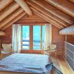 Going upstairs via a beautiful staircase, we find a large mezzanine with two double beds. One of the beds is positioned in front of a large window that offers a breathtaking view of the greenery, creating an atmosphere of serenity and tranquillity, suitable for resting. The room is completed by spacious wardrobes for clothes and personal items.
