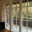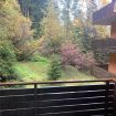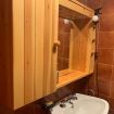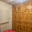 At the entrance, a hallway equipped with mirrors and coat racks leads to the living area, featuring a comfortable living room with a sofa, armchair, and dining table. The wooden furnishings, with warm and typically alpine tones, envelop the space in a warm and welcoming atmosphere, creating a pleasant contrast with the bright white walls and floors. From the large windows, you can step out directly onto the covered terrace, perfect for enjoying the view of the surrounding forest and spending time outdoors. The kitchen, separate from the living room, is compact but well-equipped, with everything you need to cook as you would at home.